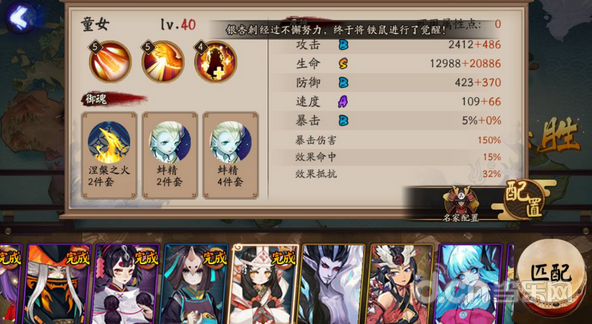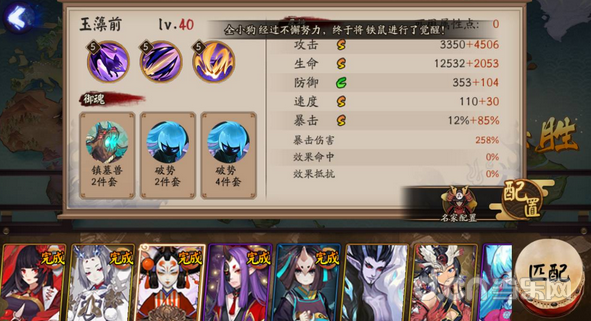 妖琴师:妖琴师是这套阵容的关键,只为了让主力输出玉前澡能够频繁的出手。技能余音可以让我方一名目标立即行动一次,让玉前澡做出第一波攻击,并且该技能还可以增加全队速度。