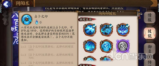 解析:这是一个pk神技,效果跟般若的2技能差不多,封掉对面的御魂和被动效果,满级后几率有45%。虽然去不掉御魂属性,但没有御魂效果和被动技能的式神,也就是一张纸而已。