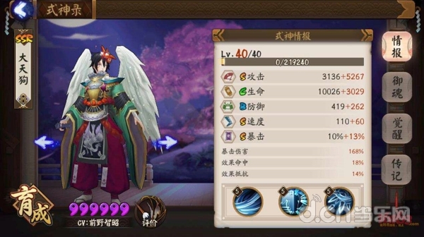 接下来看下天狗带着妖媚御魂的属性情况