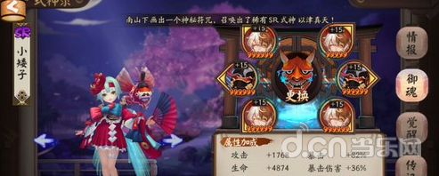可供选择的御魂:招财猫、木魅、地藏像、火灵、返魂香、骰子鬼、狰、薙魂