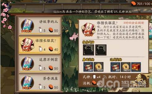在阴阳师式神委派中,选择推荐式神可以不仅提高任务成功率,同时还能获得额外奖励,其中大部分任务游戏都会直接提示,不过有些任务的推荐式神则需要自己猜测,例如下面要说的这个——谁擅长驱鼠。