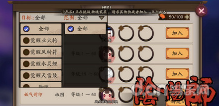 1、这边先点组队,但是一定要选择【全部】按钮,如果单独选择妖气封印你根本别想上车!