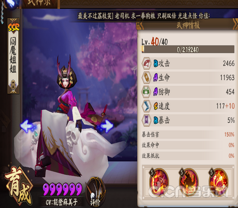 阎魔 作为一个SSR,曾经的她经常会被人从两个方面吐槽。1.作为SSR面板怎么那么差,只有一个S属性。2.作为一个SSR式神,大招三火能被雨女一个两火技能直接洗掉,简直是哭晕在厕所。第一个问题,其实在以一速作为核心的队伍里,阎魔天生127一速是相当变态的存在,她其实就是个速控式神,一速多10点速度在高分段大家都知道意味着什么,大家速度都基本是满的情况下,多1点速度就是谁先出手的存在,这点很关键。第二个问题,随着阎魔的改版,让阎魔重新坐回斗技一姐的宝座,让阎魔遇到雨女变得不那么尴尬。