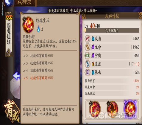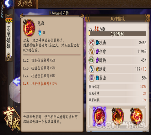 1技能 鬼面 毫无亮点,跟其它式神差不多,升满125%伤害。