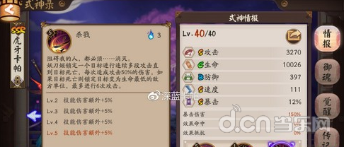 3技能是妖刀的必杀技,高达六段的爆发式输出,一套输出轻松带走脆皮,配合针女的被动即使面对半肉也可将对方点杀,且目标死亡可继续斩杀敌方生命最低的式神;(唯一的缺点很怕地藏)
