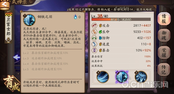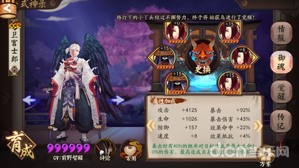 2.PVE大天狗堆御魂属性,优先暴击>攻击>速度,暴伤属性不用刻意追求,如果能做出一个暴伤大天狗也是可以的。