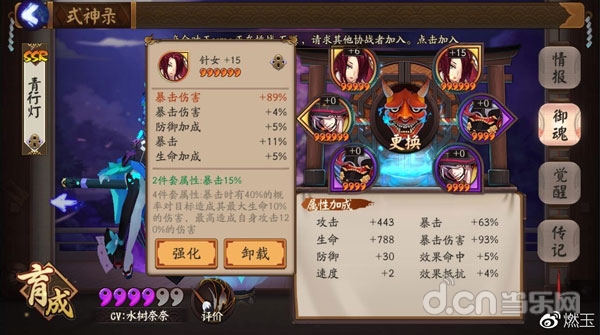 注:实际上,就算属性正确,具体数值也良莠不齐,最可恶的是还有小数点。例如一个五次都强化在爆伤上的御魂,具体暴击伤害在+20~22%之间,在此我们全都取平均值:暴击初始+2.7%,每次强化+2.7%,最多+16%。
