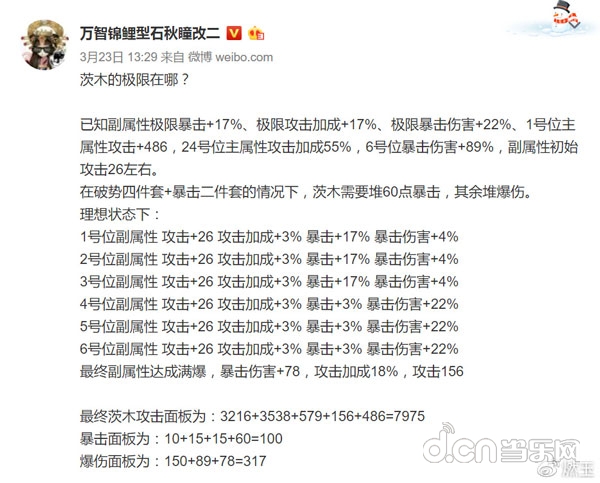 大佬计算的极限茨木总共有30次副属性要强化,其中有至少16次强化在暴击上,剩下的全都强化在爆伤上,光要达到这一点,就要给六星强化79亿次+15。就算网易大发慈悲,每次强化算上极品御魂胚子,都只要一万块钱,那么也要79万亿人民币。