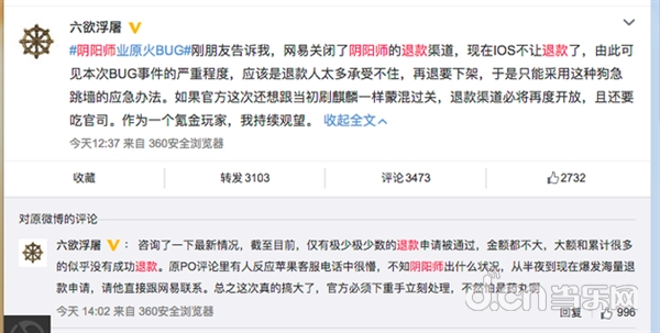 随后,有网友爆料:“网易关闭了阴阳师的退款渠道,现在iOS不让退款了,由此可见本次BUG事件的严重程度,应该是退款人太多承受不住,再退要下架。从半夜到现在爆发海量退款申请,截至目前,仅有极少极少数的退款申请被通过,金额都不大,大额和累计很多的似乎没有成功退款。”