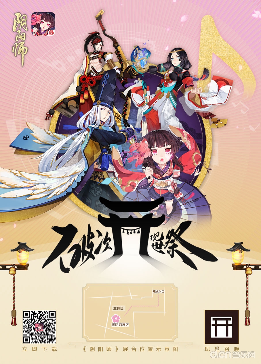 展区将会派发《阴阳师》专属宣传册,内含的有趣的式神纹身贴;观众可以来到特别设计的《阴阳师》音乐墙近距离接触平安京的“声”色故事。观众还可前往游戏深度体验区,体验语音、画符、现世召唤式神召唤,根据召唤成功的式神等级获得对应等级的礼品。除此之外,人气唱见西瓜Kune、祈Inory、佑可猫将来到展台献上精彩表演,还有人气舞见coser陪你一起玩转音乐节。