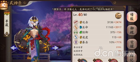 首先是陆生的反击可以有概率带着酒吞再多大一轮,虽然是概率性的,但是提升整体输出是非常不错的选择。爆伤属性保证在250左右的情况下,