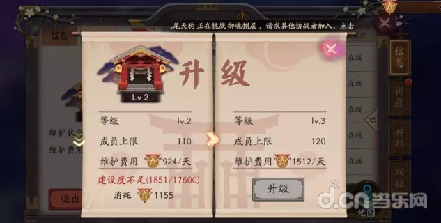 【阴阳寮全面升级】 寮成员完成每日集体任务,便可提升阴阳寮建设度,帮助阴阳寮获得升级资格;获得升级资格后,会长可花费一定的阴阳寮勋章进行升级,阴阳寮升级后便可容纳更多成员,同时解锁更多福利。
