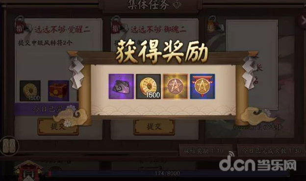 【每日集体任务开启】 阴阳寮每天都会有3个集体任务,各位阴阳师完成任务后将获得包括个人功勋在内的大量奖励!集体任务每日最多可完成30次,每天的前10次集体任务奖励翻倍。