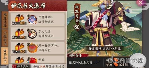 PS:南美洲的跳跳哥哥地域鬼王遇到这种特殊条件真的很变态,里面没有奶妈可以选择,第三轮的小怪有薙魂小僧,boss跳跳哥哥还会复活,奶一口2W+。