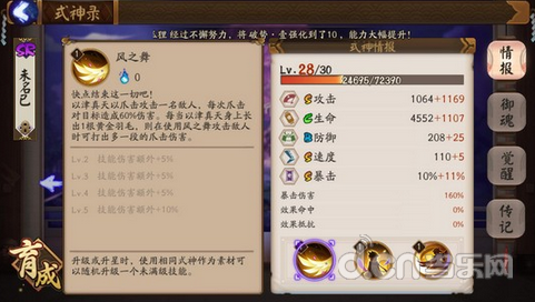 因此御魂推荐轮入道四件套+暴击/攻击两件套,六号位暴击,暴击一定要堆,和其他输出式神一样追求满爆高伤。最开始我是带的四针女+二破势暴击套,实测发现轮入道收益更大,自动的时候以津真天频繁使用风之舞,因为羽毛是比较难叠的,同时可以被雨女驱散,但要有羽毛才会使用大招,手动在鬼火足的情况下可以用大招,但伤害不高。而带轮入道会使以津真天的回合增加,便于叠羽毛,多次普攻易触发鸟姐的协战,攻击粘走羽毛的敌方又会触发鸟妹的协战。因此可以搭配常规的兔子椒图火机和鸟姐,鸟姐和鸟妹互相触发,伤害不输于鸟姐配妖刀。