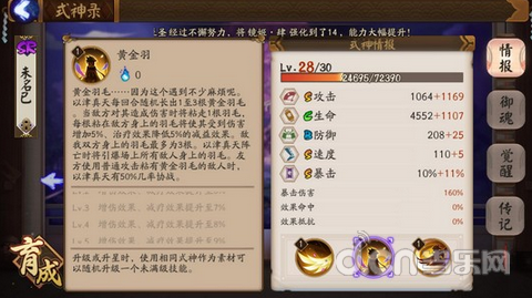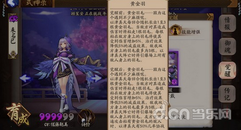 黄金羽毛,不耗火,是以津真天打出伤害的关键,觉醒后技能增强为友方使用普通攻击带有黄金羽毛的敌人时,以津真天有50%的几率进行协战,对比鸟姐的被动协战不仅几率更大,同时对敌人有增伤减疗的debuff效果。另外椒图连线其他式神被打可以触发长出黄金羽毛。
