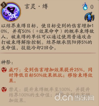 言灵·缚:都在④里,所以只能从两个里面选择一个,一般是禁足配合结界使用。当然威吓可以和其他技能互动。