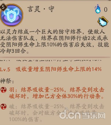 言灵·守:都在⑤里,羽比较适合斗技,间接拉条。破比较适合pve,比如结界突破的茨木,ai都会傻傻的放技能然后自杀~
