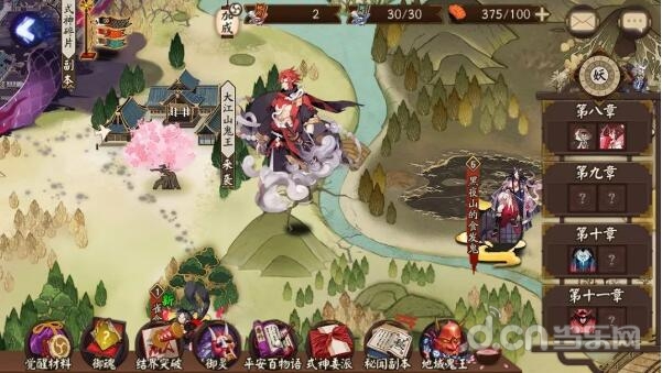 阴阳师们可从庭院内小纸人头顶的气泡进入活动页面,也可以点击探索地图中的鬼王直接进入。