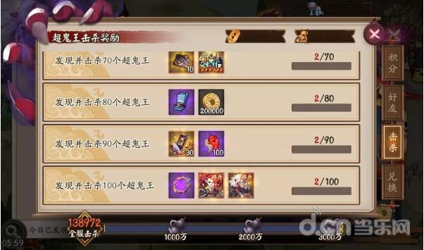 当全服阴阳师击杀大江山鬼王次数,达到1000万、2000万、3000万的时候,可解锁丰厚的集结奖励!