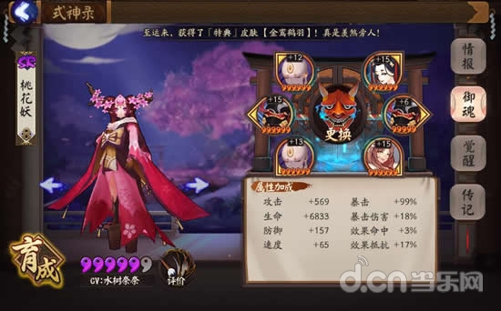 桃花妖的防御成长为S,非常高的防御加上御魂的加成,让她非常难被击杀,而只要她不死,队友就可以复活,所以在斗技中,桃花给人的压力还是非常大的。