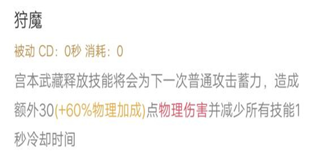 整体分析:被动技能决定了宫本需要利用平a打出高伤害,,同时也让宫本技能刷新更快。