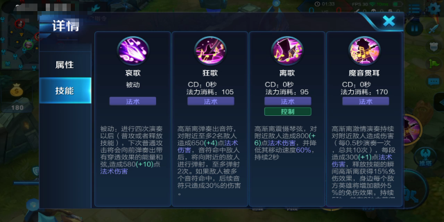 进行四次演奏以后(普攻或施放技能),下次普通攻击将会向前弹奏出带有穿透效果的能量和弦,造成300(100%法术加成)的法术伤害。