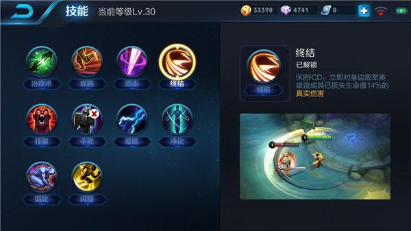 项羽可以选择携带召唤师技能终结,在遇到残血的敌人之后,利用终结可以立即将敌人击杀,团战时终结的效果尤为给力,可以迅速的击杀敌方残血英雄,不给敌方英雄逃脱的机会。