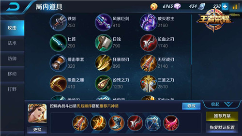 六神装:无尽战刃,闪电匕首,急速战靴,破甲弓,泣血之刃,影刃
