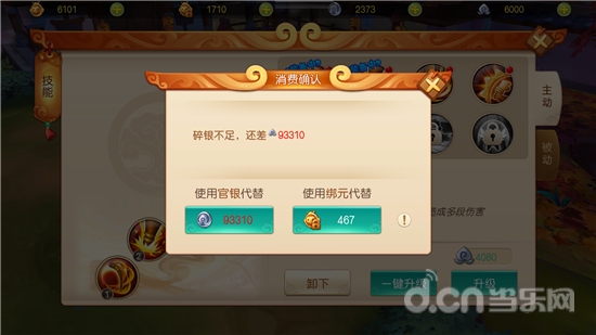 4、 买官银和碎银:官银可以在交易行买其他玩家上架的东西,碎银则用来升级技能、强化等。极度缺银子时,可以用元宝直接兑换银子应急,但最好还是不要养成习惯,还是靠押镖自己动作丰衣足食比较靠谱呀!