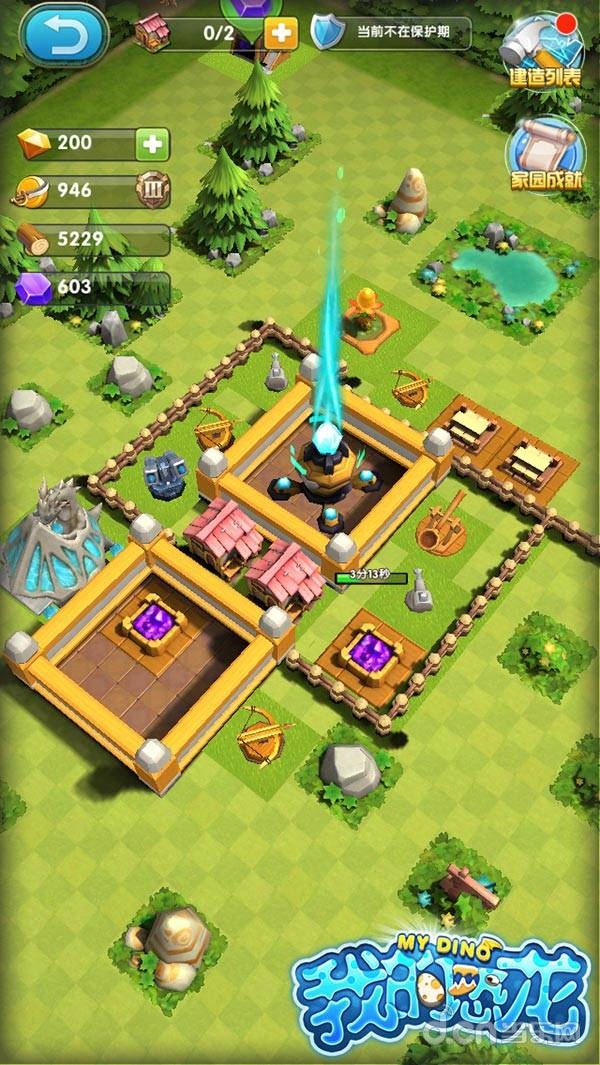 家园作为玩家的核心基地,为玩家提供进化升级的场所和资源,因此家园的安全至关重要。玩家可以在地图上建立家园并派遣恐龙开采资源,不断开拓家园场景。玩家需要建造房屋以及布置防御工事来抵御入侵。在限定时间内抵御住对手攻击,成功保护家园建筑至少一处不受破坏将获得胜利。