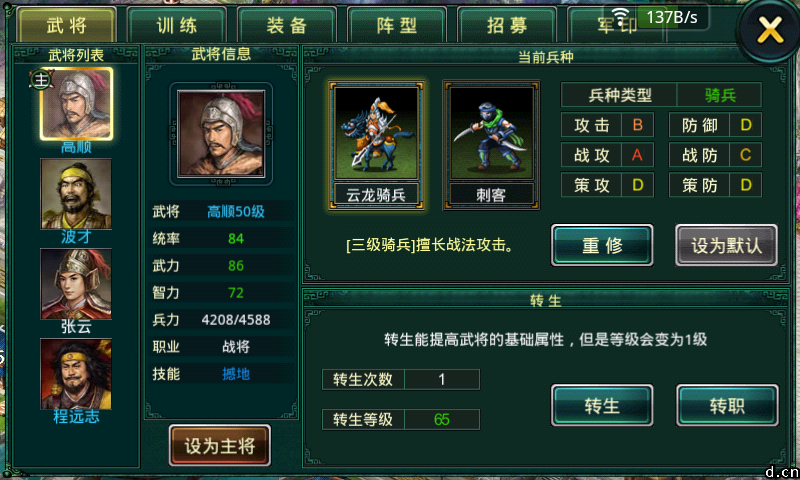 选好了武将,当然要升级武将的等级。前期多用用“突飞猛进”吧,尽快让武将到40级,那样就可以尽早转正,提高兵力战斗力。