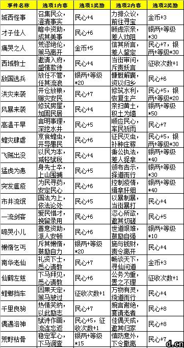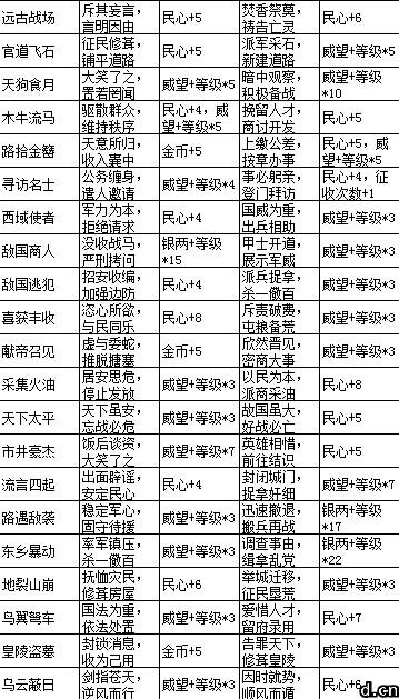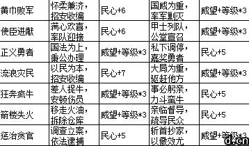 怎么赢得民心呢,我们从下列的表格就能很清晰的看出,征收事件和酒馆会谈都是获取民心的办法。