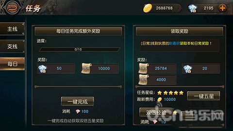 日常任务:日常任务是玩家每天一定要做的,完成之后可以获得大量的经验,许多玩家为了省时间选择用红钻一键完成,不过个人不建议这么做,不差钱的玩家可以忽略。