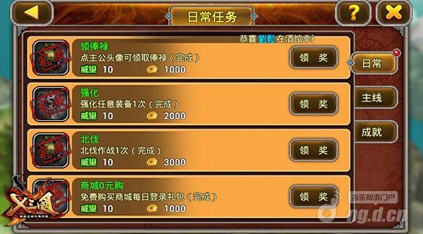 比较费脑子的事情做完之后,就可以搞下简单的,按照任务收奖励开始啦!其实升装,重铸,签到,收俸禄,扫副本都是任务的一部分,完成就能领奖!剩下的任务比如熔炼,签到抽奖,时空战役,都做起来!然后去背包里把各种药丸给吃了,比如威望丹,经验丹等!萌将的经验当然越高越好咯!最后再检查下麾下萌将有没有需要升星进阶的,达到最佳战力,就可以出去挑战排名赛啦!