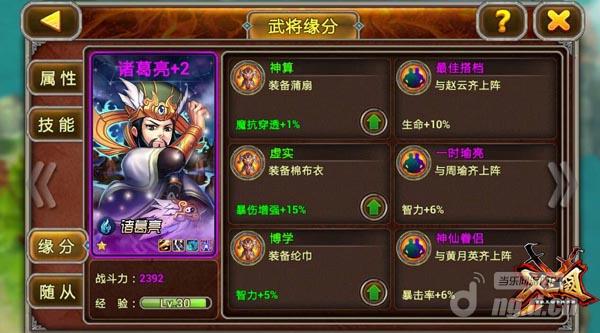 战火缭绕《X三国》,武将男神何其多,无论是雄才大略的诸葛亮还是乱世枭雄曹操又或者风流才子周瑜,谁都想收入帐下,表示已经看花眼,选择恐惧症不能忍!神秘的缘分体系来了,用缘分来打造军队,完美的男男组合可是决胜千里的关键哦!