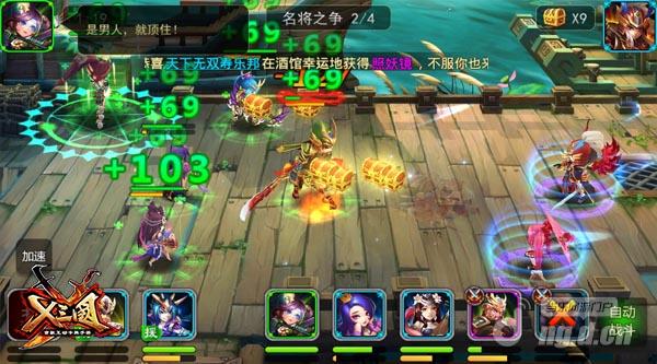 萌是一种态度,不萌不三国。男神曹操都会吐槽三国地名了,“为什么汝南,好娘炮的名字啊”。猛将周泰打赢了会求“掌声在哪里”,一分钟变萌货。许褚英勇护主的悍将原来是吃货啊,败了就抱怨“今天没吃饱,改天再和你们斗”。不过请各位主公注意了,这也是许褚的技能,吼完这句,他就有一次复活机会,略酷。在《X三国》中,武将放技能前都有固定台词的,记下来会有意外惊喜哦!