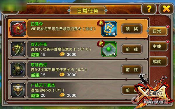 成长核心的主线任务,日积月累丰厚身家的日常任务,彰显实力的成就任务,《X三国》中的三大任务系统相辅相成,不止为玩家带来了丰富多彩的游戏体验,更让玩家可以收获无数劲爆的奖励,助玩家成就三国霸业!