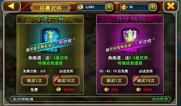 《X三国》新版酒馆这次也做出重大改善,原本只有武将和将魂的酒馆,现在变成集武将、将魂、装备、阵法、材料于一身的多功能酒馆。只要有“钱”,玩家将不需要再为没有装备的问题而烦恼啦。俗话说的好啊,有钱,就是任性。