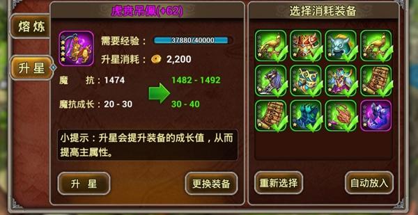 铁匠铺的出现,令装备升级得到巨大变动,升星进阶重铸武器。一把五星武器在手,斩敌杀将,傲视群凶,多余的装备不再一无是处,熔炼将废弃的装备,化为钱币,更有概率获得蓝装重铸石的等。升星让你的装备变得更大强大,从一星装备跨越五星装备,实力大幅提升。