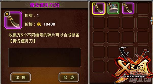 装备碎片:5个合成(青龙偃月刀等)、6个合成(玉玺等)。
