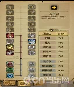 然后继续往上点,点满10攻击,10防御,技能都出左边的。