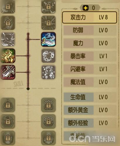 然后说说属性点和技能,如果大家玩的是物理的角色,属性点优先级为攻击>暴击>闪避>生命=防御