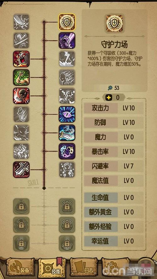“守护力场”,获得一个可吸收(300+魔力*400%)伤害的守护力场,守护力场存在期间,魔力增加50%。10000魔力值时,可吸收的伤害为40300。守护力场存在期间,魔力值增加到15000,此时的治疗术回复为52500,魔法吸取输出魔法伤害为18750,能量爆裂造成魔法伤害值为37500。