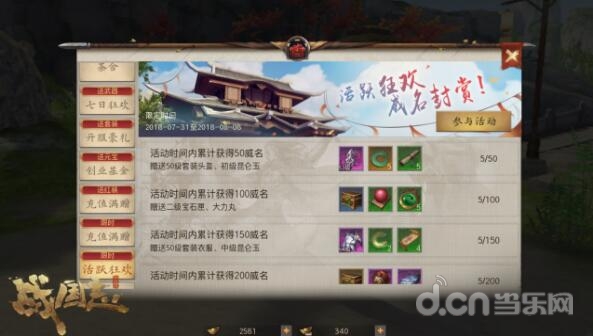 活跃狂欢威名封赏