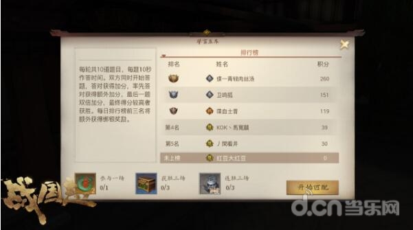 确认参加活动后,将有两位将军进入同一场答题,每轮共十道题目,答对则加分,率先答题有额外加分,最后一题还有双倍加分哦,最终得分较高的将军获得胜利,只要参与均有奖励,将军们是时候展现真正的实力了!
