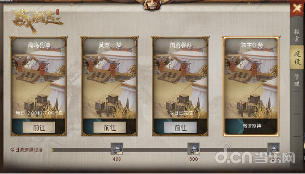 将军参与每日山河策马活动,在自由探索战国世界的同时,将有概率发现沙漠荒城遗迹。发现遗迹之后,将自动通知将军所在的帮派前来协助,将军也可选择告知国家共同探索。