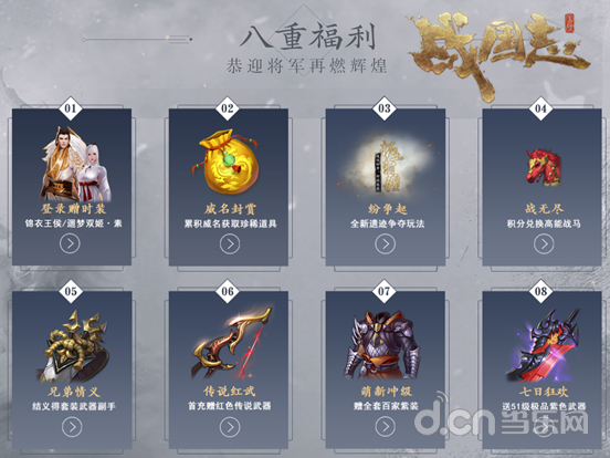 《战国志》年度资料片“无尽纷争”定档10月19日,除了楼兰古城探索遗迹外,将军还可体验全新系统“无尽纷争”,全新领土任君拓土封疆,更多遗迹带领兄弟奇遇探索!醉卧沙场,战国绝地大逃生玩法同步上线!