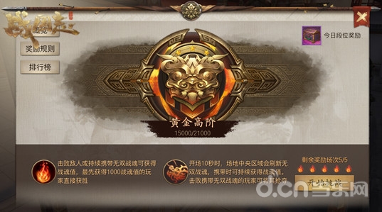 将军每日拥有5次挑战机会,每次挑战结束后,可获得场次奖励并增加段位积分,奖励为丰厚的绑定元宝、马技残页和高级宝石,之后将军仍可继续挑战,但后续的奖励及积分为0。