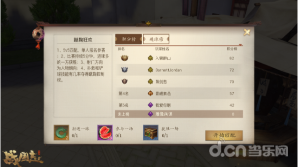 “蹴鞠狂欢”为单人匹配玩法,将军点击“开始匹配”进入匹配,满足5V5条件即可开启比赛,还有足球技能助你赛场之路畅通无阻,每位将军拥有4个蹴鞠技能,射门、传球、铲球、扑救,将军可以根据赛场形势灵活运用,在赛场上一较高下!